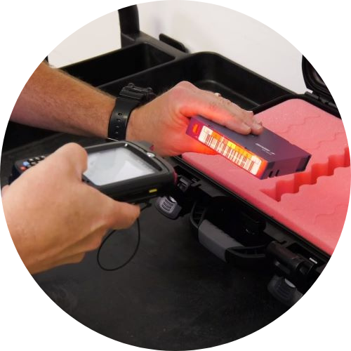 SSBRM Employee scans inventory in vault as part of a weekly client backup tape rotation service.