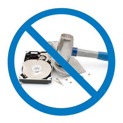 Before you grab a hammer and go to town on your computer, you may want to re-think that choice. Here’s the thing: deleting confidential information is not a DIY project. Don’t do it yourself. Data can still be retrieved from partially damaged hard drives. When it comes to erasing personally identifiable or private business information (think confidential business records, social security numbers, etc.) and protected health information, do you really want to leave that up to chance?